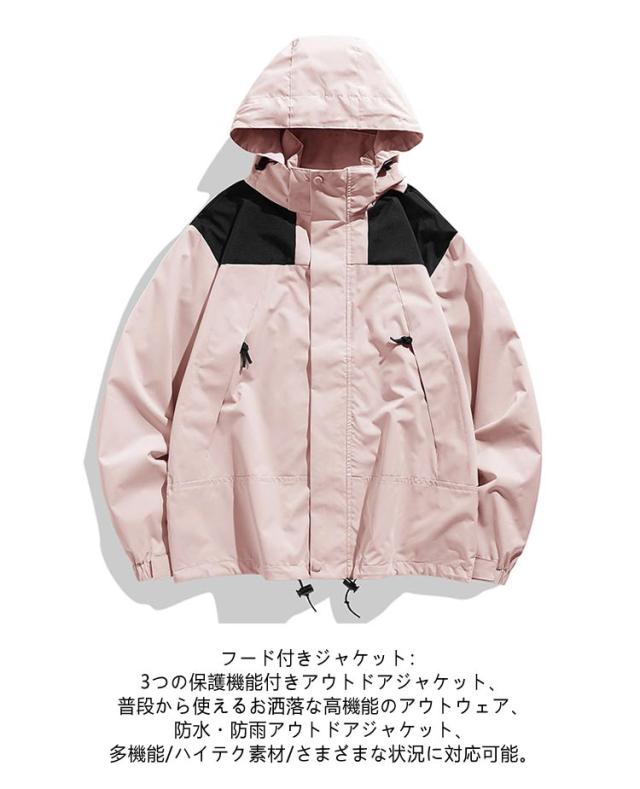 春 ジャケット ジャケット 防風 アウトドアジャケット 冬 フード付き 撥水 秋 マウンテンパーカー 多機能 防寒 メンズ カーゴジャケット ウインドブレーカー ジャンパー レインウェア コート 上着 登山服 防雨 防汚 軽量 保温 通気