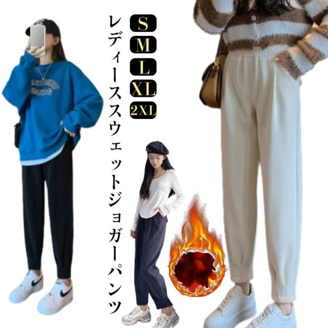 暖かい ボトムス ジョガーパンツ 厚手 レディース パンツ ジョガーパンツ スウェットパンツ テーパードパンツ テーパード ウェストゴム ポケットあり あたたかい あったか 防寒 保温 春 秋