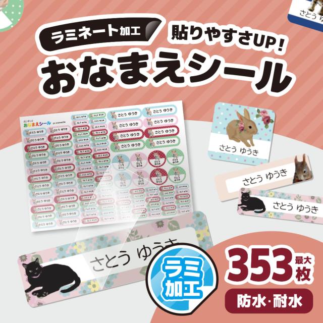 名前シール ラミネート ネームラベル お名前シール 耐水 耐熱 ネームシール おなまえシール 保育園 幼稚園 小学校 入園準備 入学準備 防水 レンジ 子供 キッズ シール なまえシール 名前 ノンアイロン アイロン不要 アニマル 入園 入学 耐水シール agesugi_snk