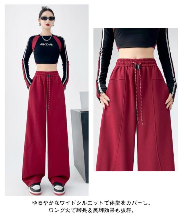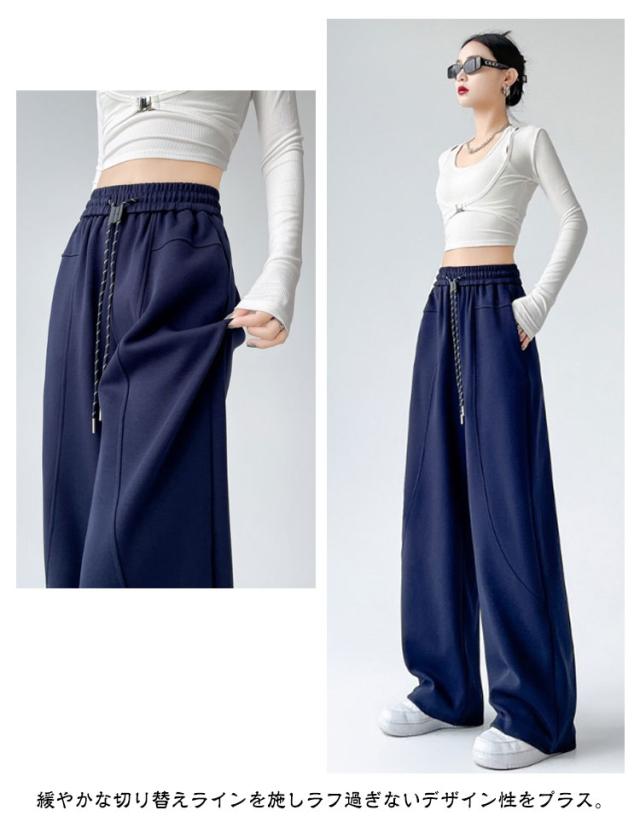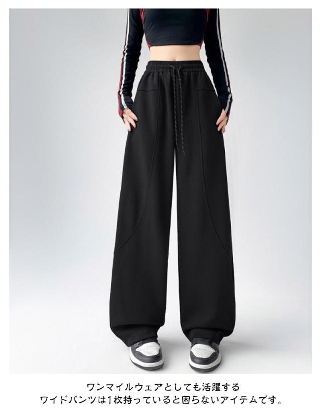 ジャージ 美脚ライン カーブパンツ ワイドパンツ スウェット レディース 裏起毛 裏起毛 体型カバー パンツ 下 スウェットパンツ 脚長効果 大人 着痩せ ゆったり ワイド 秋 冬 春 ウエストゴム スエット