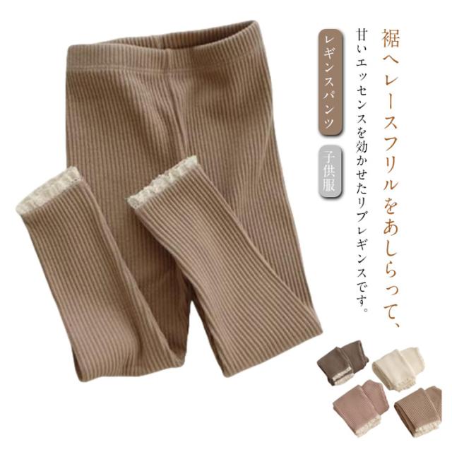 伸びる キッズ リブレギンス リブレギンス ロングパンツ 女の子 レギンスパンツ スパッツ 保育園 裾レースフリル ボトムス 無地 くすみカラー 小学生 幼稚園 春 通園 通学 トレンド 子供服 秋 冬 韓国ファッション
