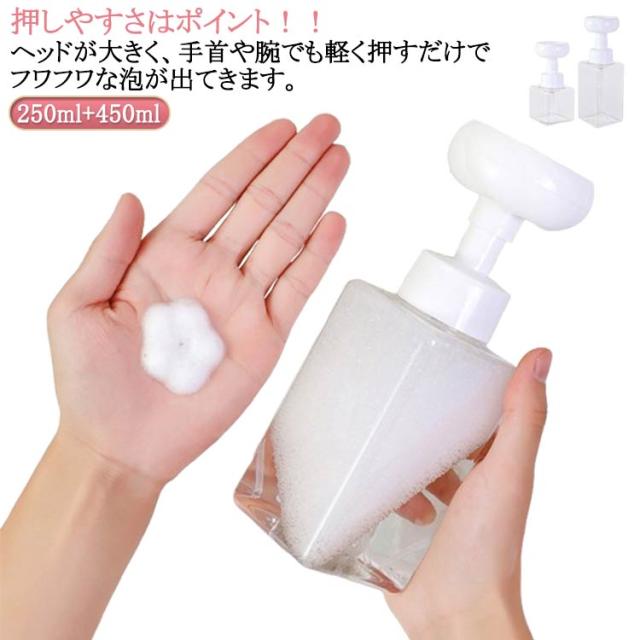 手洗い トイレ ソープディスペンサー ハンドソープボトル ソープディスペンサー 2個セット ポンプ式 ハンドソープ 広口花形 詰め替え 泡 オシャレ かわいい 台所 キッチン 手動 洗面所 バスルーム お風呂場 プレゼント 母の日