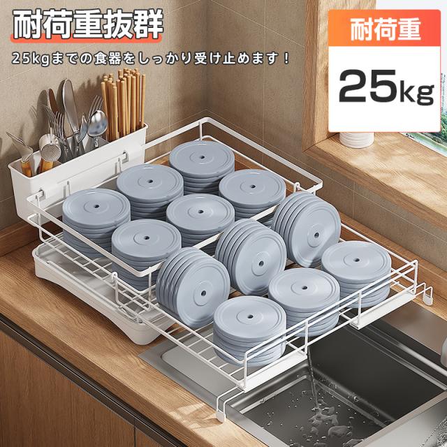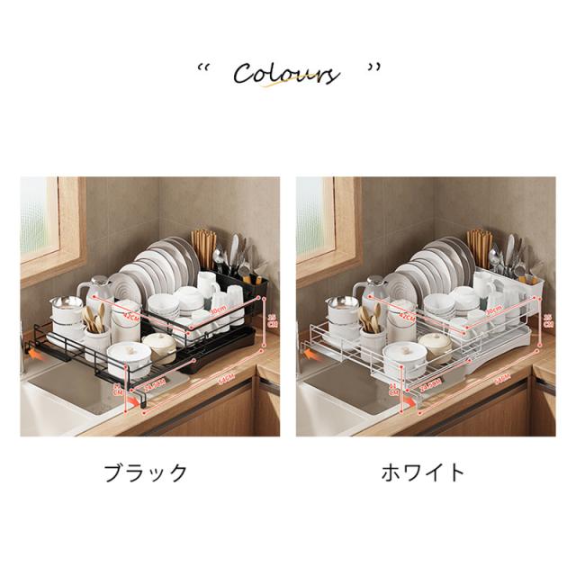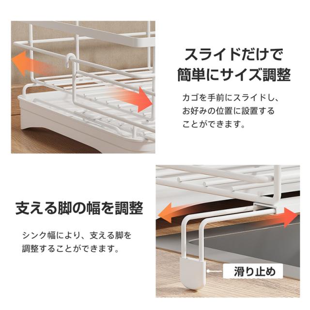 水切り 水切りラック サイズ調整可能 伸縮 組み立て簡単 省スペース 箸置き付き キッチン収納 シンク上 大容量 水切りかご 横置 母の日