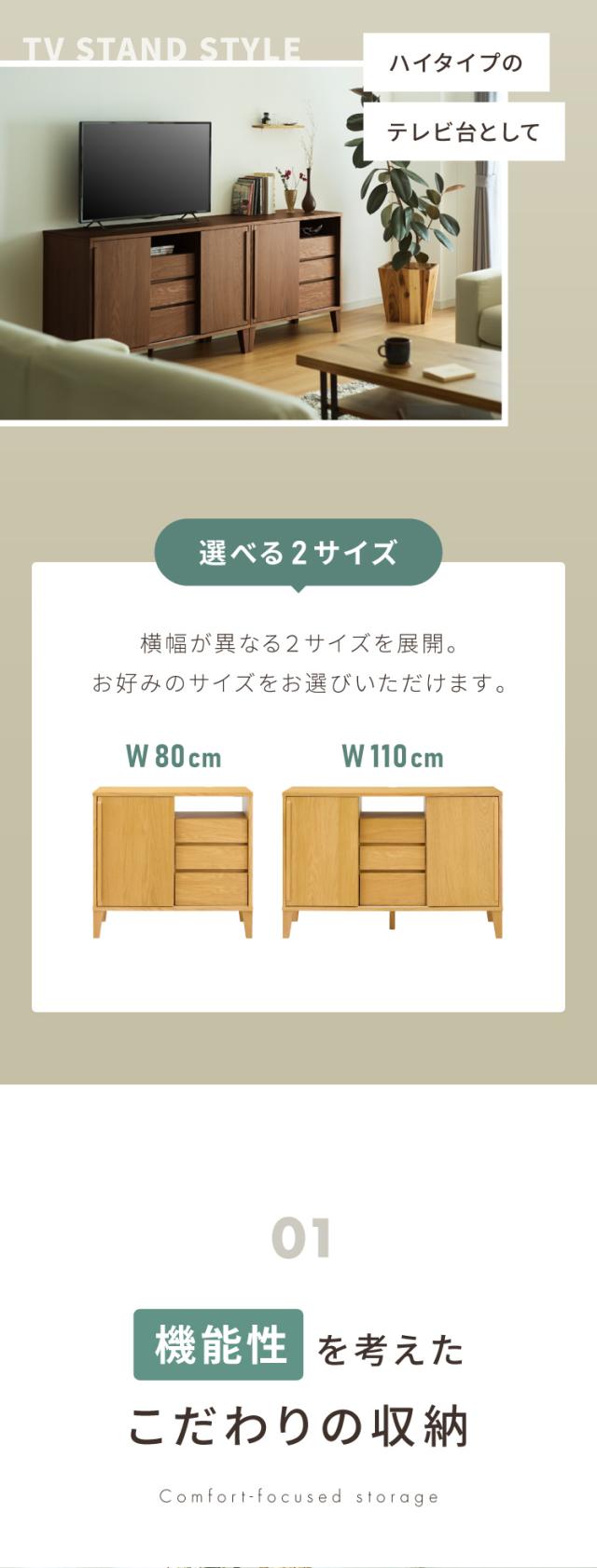 引戸式キャビネット 幅80cm 天然木 リビングボードリビング収納 テレビ台 ハイタイプ 引き戸 引き出し収納 A4サイズ収納 リビング収納 サイドボード チェスト タンス 収納 ルーター収納 テレ
