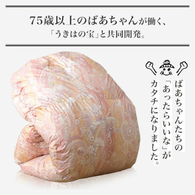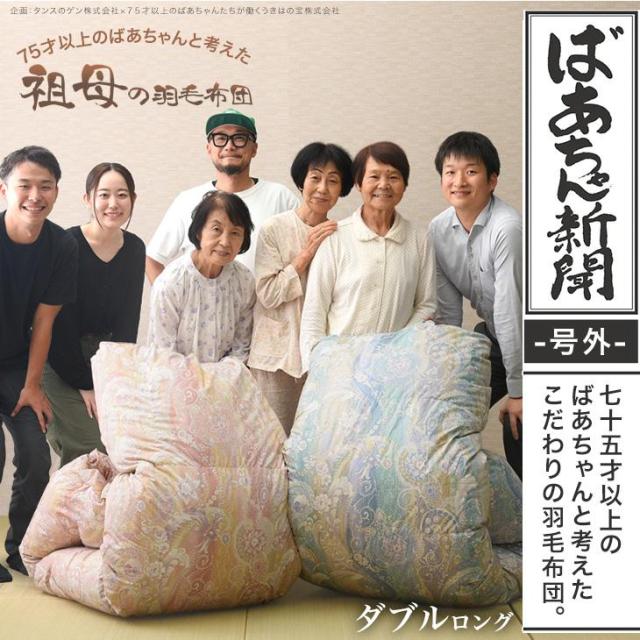 75才以上のばあちゃんと開発“祖母の羽毛布団” ばあちゃん新聞 掛け布団 ダブル ホワイトダックダウン 93% 二層キルト 60サテン 綿100% ハードケース付 日本製 コインランドリーで 洗える 400dp以上 羽毛ふとん 羽毛掛け布団 掛布団