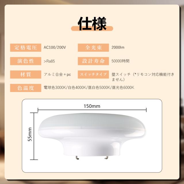 - ※ 本品はLEDシーリングライト、LEDチップはライト本体には嵌めていますので、普通の電球が付属しません。