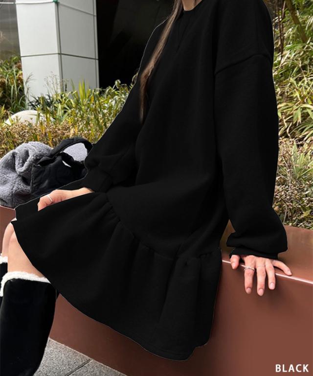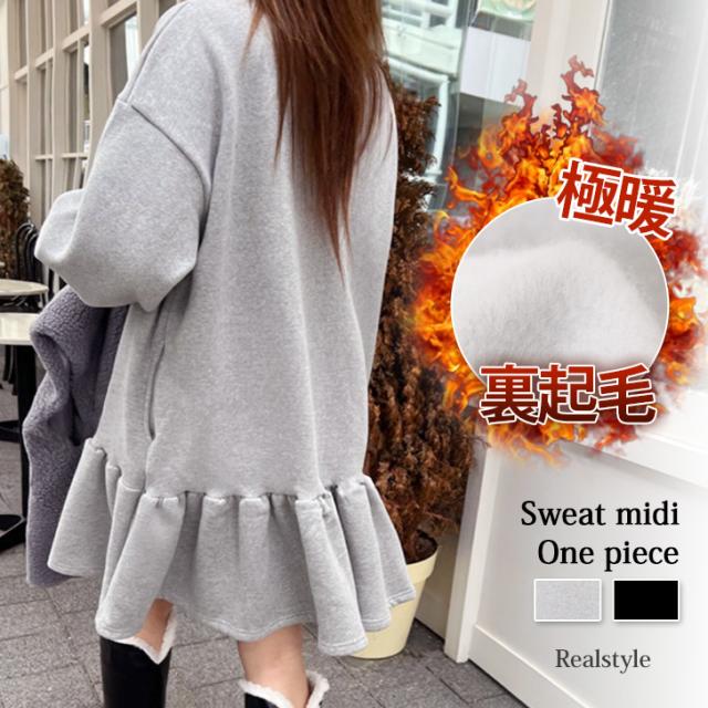 新作 ワンピース レディース 厚手 長袖 秋 冬 裏起毛 膝丈 ひざ丈 フリル 大きいサイズ 防寒 暖かい おしゃれ ゆったり 体型カバー 部屋着