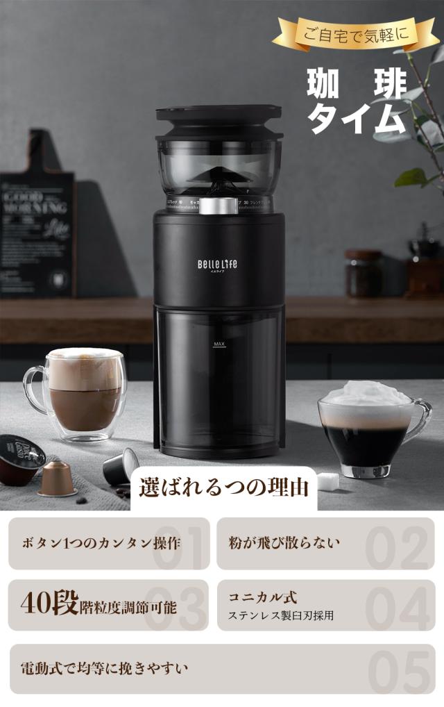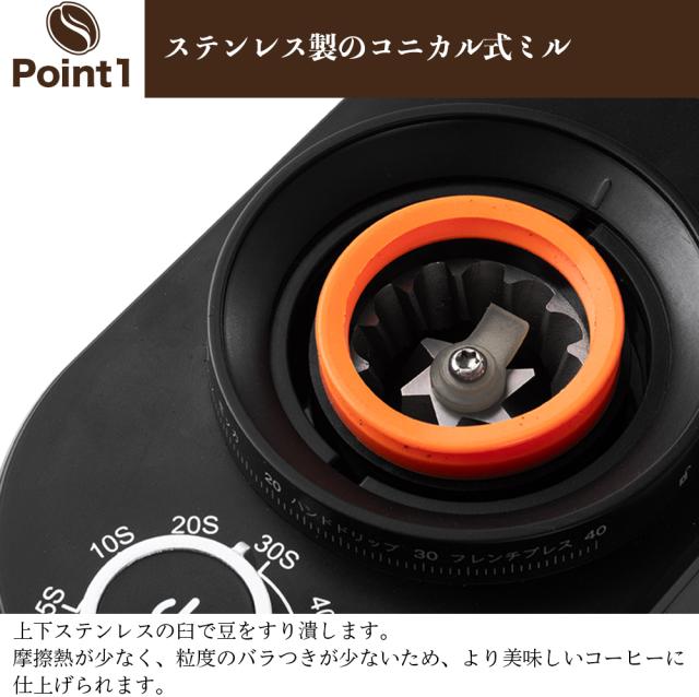 コーヒー豆 挽く 豆挽き器 コーヒーグラインダー 電動ミル セラミック刃 臼式 コニカル式コーヒーミル エスプレッソミル コーン式 コーヒーミルグラインダー 珈琲ミル ステンレスコーヒーミル おしゃれ 電動ミルグラインダー 珈琲グラインダー ミルグラインダー スリム 誕生日 プレゼント ギフト エスプレッソグラインダー 敬老の日 還暦祝い お祝い 新築祝い 母の日 父の日 コーヒーメーカー