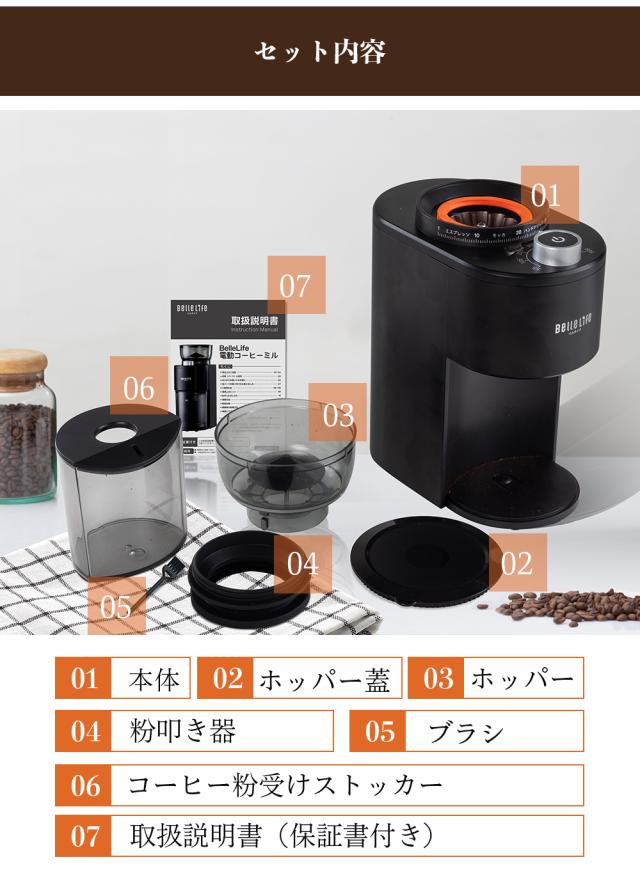 【清掃簡単・豊富な付属品】珈琲磨豆機は取り外し可能な部品から成り立っており、簡単に分解して洗浄できます。定期的なメンテナンスにより、常に清潔な状態を保ち、最高の味わいを提供します。Bellelifeコーヒーミルには、掃除用ブラシ、粉叩き器など、さまざまな便利なアクセサリーが付属しています。お客様の好みやインテリアに合わせて、個性的な珈琲研磨機を手に入れて、自分だけのコーヒーエクスペリエンスを実現しましょう。