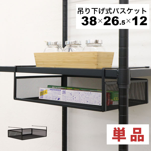 引っ掛ける 収納 ラック 頑丈 吊り下げラック 吊り戸棚下 収納ラック A4対応 キッチン 棚板下収納ラック ぶら下げるカゴ 棚の下 メッシュバスケット 幅38cm 奥行26.5cm 高さ12cm(収納高さ約8cm) ハンギングラック 引っ掛けラック 引っ掛け収納 ブラック黒 完成品 1個単品