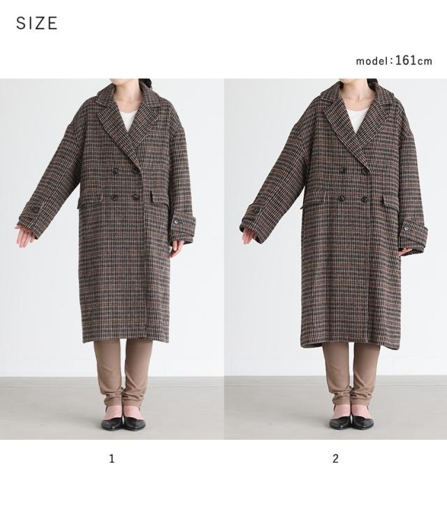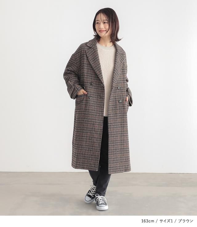 テーラードコート レディース アウター ロングコート ダブルテーラード チェック柄 裏地付き 長袖 オーバーサイズ 体型カバー 微起毛 【TP】 羽織り コート ジャケット 襟付き n'OrLABEL ノア—ルレーベル 大人女子 大人可愛い お洒落可愛い 大人カジュアル ベーシック ニュアンス ラフ エフォートレス オフィスカジュアル タブ付き 膝丈 ロング丈 ビッグシルエット 配色 レイヤード 重ね着 ポケット 防寒 あったか 秋 冬 カジュアル シンプル ナチュラル モード キレカジ フェミニン 上品 きれいめ Sサイズ Mサイズ Lサイズ LLサイズ 3Lサイズ XLサイズ ぽっちゃり 大きいサイズ プラスサイズ 10代 20代 30代 40代 50代 60代 女子会 オフィス 通勤 通学 お買い物 お出掛け 旅行 リゾート レジャー おしゃれ お洒落 トレンド 流行 osharewalker オシャレウォーカー おしゃれうぉーかー ベージュ ブラウン 茶色 マルチカラー ミックスカラー[ID]14om0mu