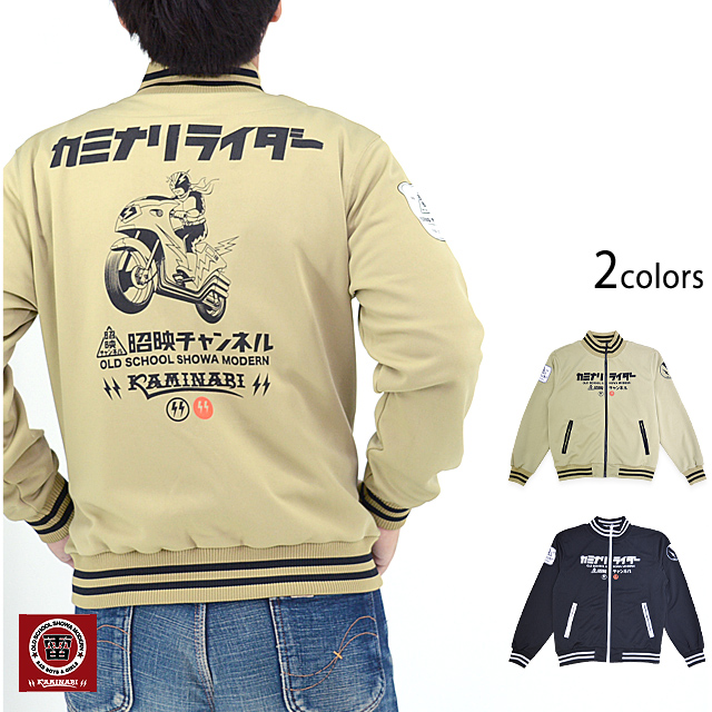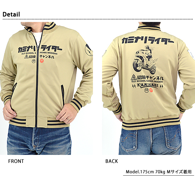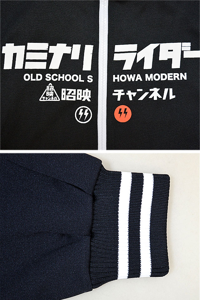 「JAPANESE BAD BOY」をコンセプトに掲げ、昭和の由緒正しき不良文化にロックなスパイスを注入したブランド「カミナリ」より「カミナリライダー ジャージ(KJS-1500)」が入荷してまいりました。 どこか懐かしいグラフィックは誰もが憧れたあのヒーローがモチーフ。 当時は誰もが隊員になりたかったほど人気でした。 フロントはジップ仕様で、襟元はスタンドでも寝かせて襟を作ることも出来ます。 生地には、ポリエステル100%のてろんとしたジャージ素材を採用。 | |||||||||||||||||||||||||