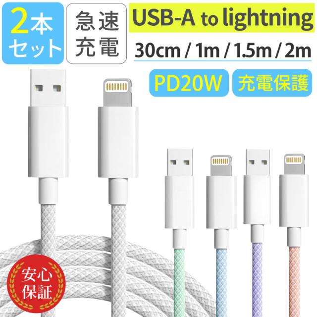 iPhone 充電 ケーブル 【2本セット】 ライトニングケーブル 急速 lightning USB-A PD20W対応 2m 1.5m 1m 30cm 充電器 高速データ転送 断線防止 付根保護 14 14plus 13 mini pro max 12 12mini SE2 11 X XS XR 8 7 6 iPad airpods