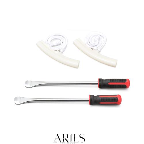 ●お得なタイヤレバー&リムプロテクターセット。 ●レバー全長300mm×2(グリップ90mm)、ポリウレタン樹脂プロテクター×2
