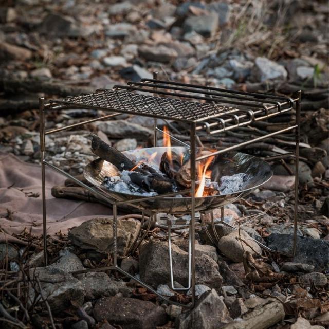 | 商品概要 | ファイアーディスクソロ専用焚き火スタンド グリルブリッジの2段階構造で、焚き火料理の空間を立体的に構築し、炎の上に設置するだけで調理可能に。 高さを変えて火力を調整しながら複数の調理を行うことができます。 焚き火台の上約15cmの間距はじっくり火を通すのに最適な距離。両側から薪を投入することも可能。 ※ファイアーディスクソロ(焚き火台)は含まれませんので、別途ご用意ください。 |