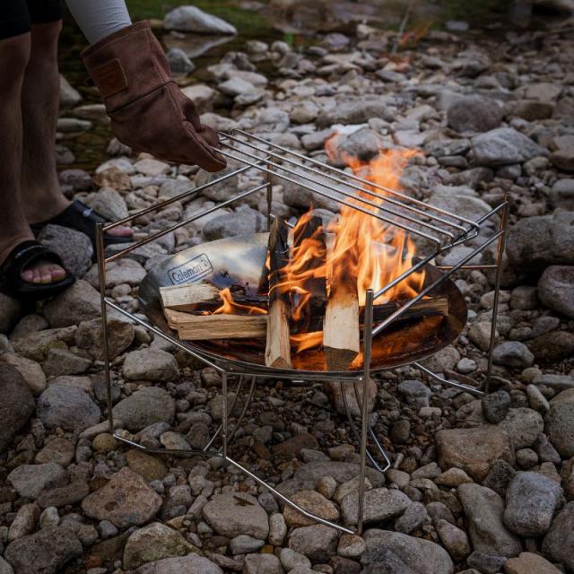 | 商品概要 | ファイアーディスクソロ専用焚き火スタンド グリルブリッジの2段階構造で、焚き火料理の空間を立体的に構築し、炎の上に設置するだけで調理可能に。 高さを変えて火力を調整しながら複数の調理を行うことができます。 焚き火台の上約15cmの間距はじっくり火を通すのに最適な距離。両側から薪を投入することも可能。 ※ファイアーディスクソロ(焚き火台)は含まれませんので、別途ご用意ください。 |