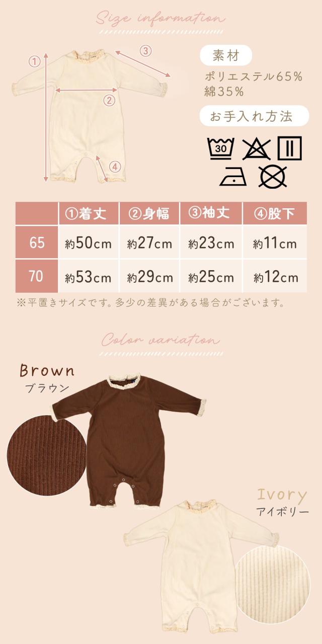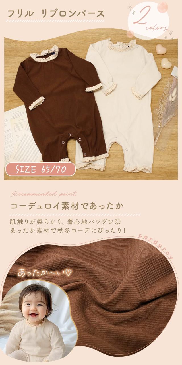 フリル/長袖ロンパース/リブ/ベビー服/男の子/女の子/赤ちゃん/かわいい/おしゃれ/コーデュロイ/あったか/冬/レース/背中/カバーオール/スナップボタン/65/70/3か月/6か月/新生児/洋服/コットン/綿/ルームウェア/柔らか/シンプル/洗い替え/お出かけ/肌着/子供服/長ズボン/部屋着/上下/一体型/オールシーズン/ベビー用品/室内着/出産祝い/プレゼント/ギフト/トップス/ボトムス/退院着/TN-RPFL/