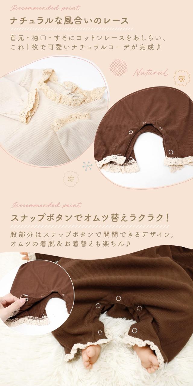 フリル 長袖ロンパース リブ ベビー服 男の子 女の子 赤ちゃん かわいい おしゃれ コーデュロイ あったか 冬 レース カバーオール 65 70 3か月 6か月 新生児 洋服 コットン 綿 ルームウェア 肌着 子供服 長ズボン 部屋着 上下 一体型 室内着 出産祝い 退院着 MILASIC TN-RPFL