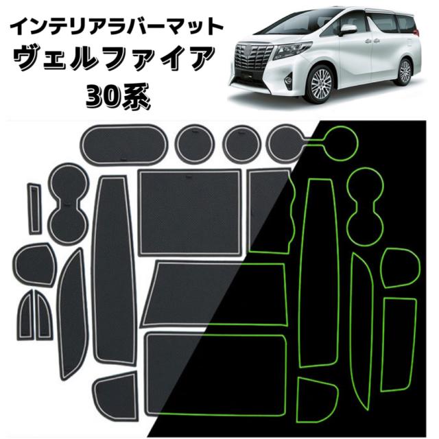 アルファード ヴェルファイア 30系 インテリアラバーマット 車種専用設計 ドアポケットマット ノンスリップマット フロアマット ゴム 内装パーツ 耐久性 防水 汚れ防止 騒音防止 車の滑り止め 保護カバー 22ピース ブラック×ホワイト 夜光 car-28-02