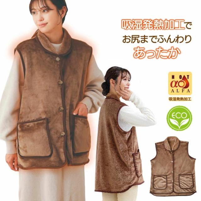 とろみのあるやわらか生地がクセになる♪お尻までふんわり包み込むあったかベスト。軽量で着ぶくれせずサッと羽織れます。