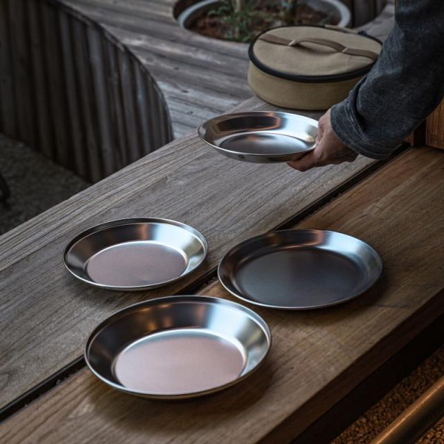 キャンピングムーン(CAMPING MOON) テーブルウェア キャンプ プレート 皿 ラージ ステンレス304 ケース 収納ケース 帆布ケース φ23.5cm φ23cm φ21cm φ20cm