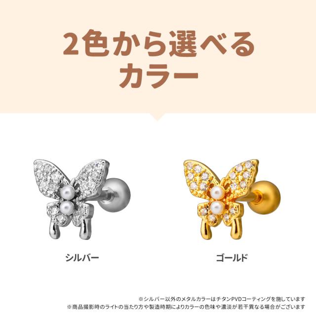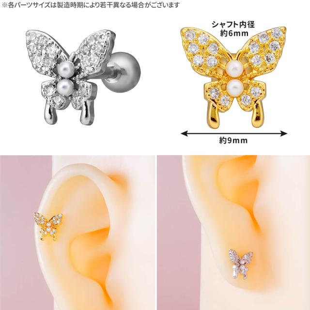 バタフライ 蝶 パヴェ ストレートバーベル 14G 16G 18G サージカルステンレス ジルコニア ジュエル ヘリックス 軟骨ピアス ボディピアス
