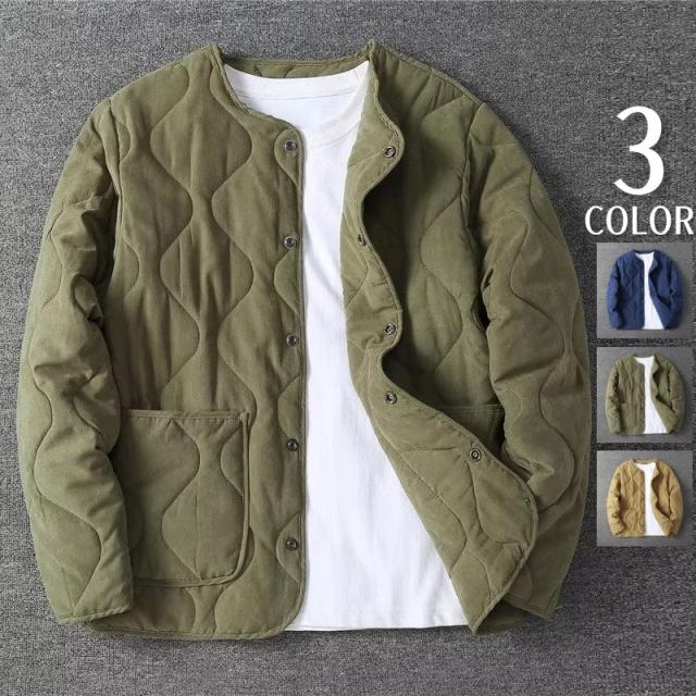 ブルゾン キルティング メンズ ノーカラージャケット 長袖 中綿 ライナージャケット ジャケット 綿服 冬