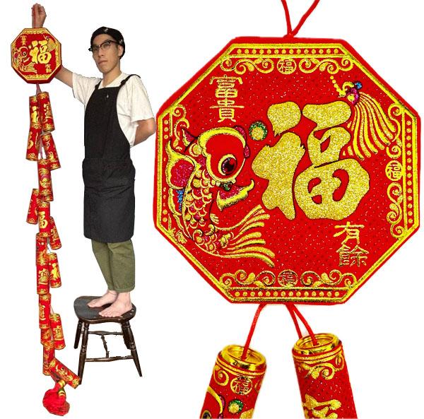 ■サイズ:全長290cm(上部紐部分を除く)、28.5cm×28.5cm(八角部分)、Φ7cm×21cm−18個(爆竹)、44cm(房長)、Φ3.6cm