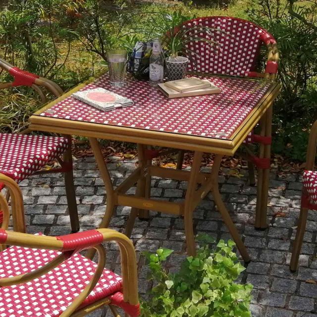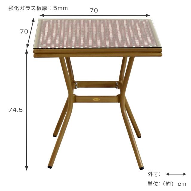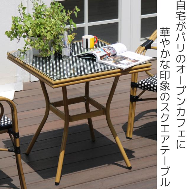 テーブル プレジール スクエア ( ガーデンテーブル ガーデン 庭 四角 長方形 机 ガラス天板 ガラス 強化ガラス カフェ テーブルのみ 単品 モダン アンティーク調 バルコニー アジャスター ラタン風 )