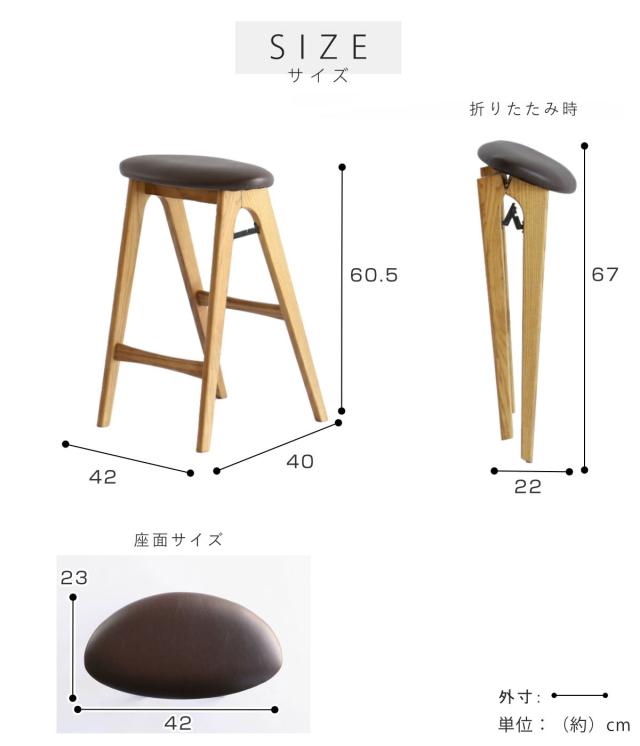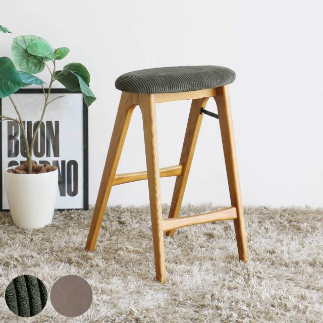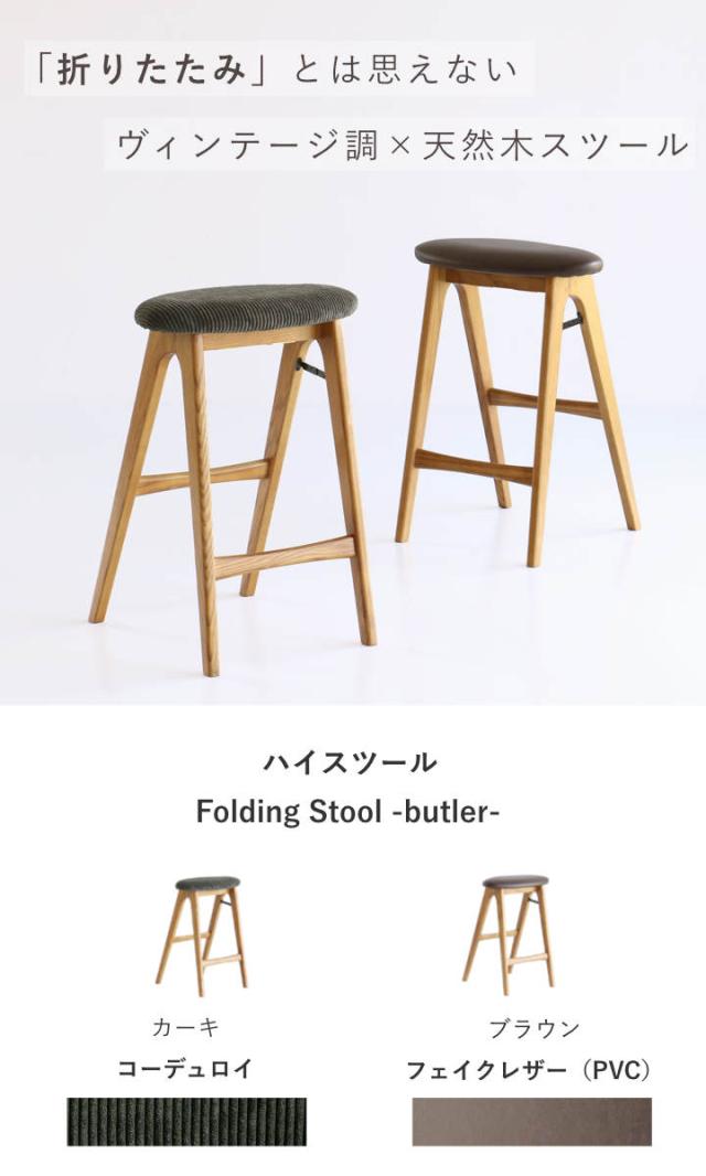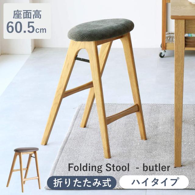 スツール 折りたたみ 高さ60.5cm 天然木 Folding Stool -butler- ( スリム 座面 丸 楕円 円形 コンパクト レザー調 コーデュロイ カウンターチェア ハイチェア バーチェア キッチン チェア 椅子 )