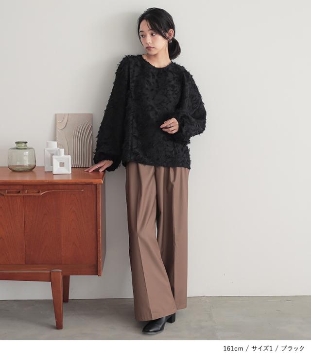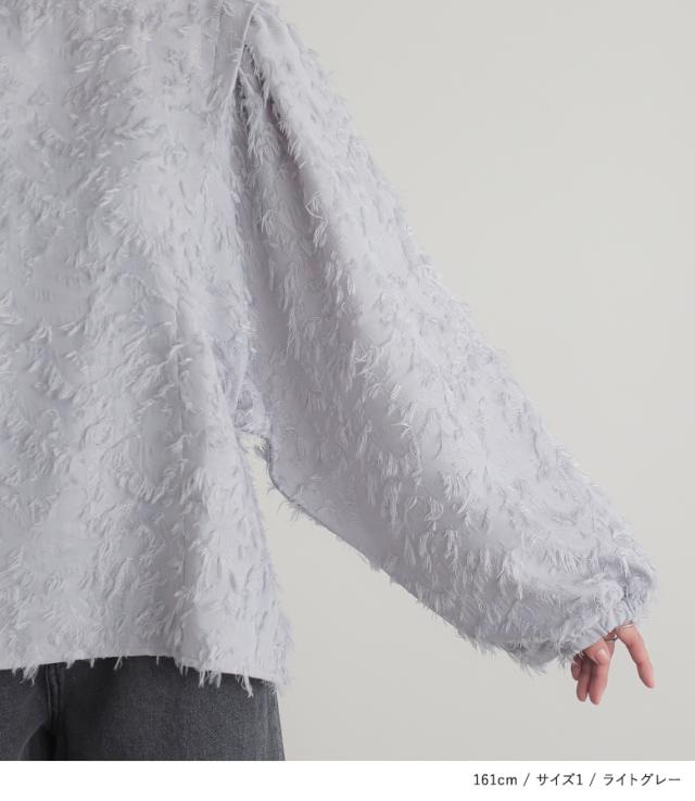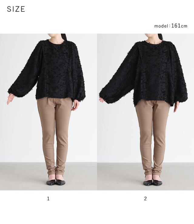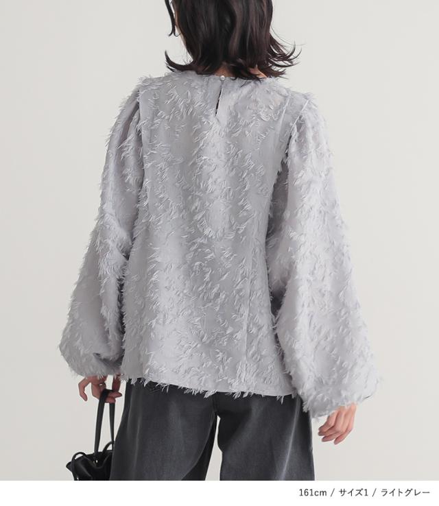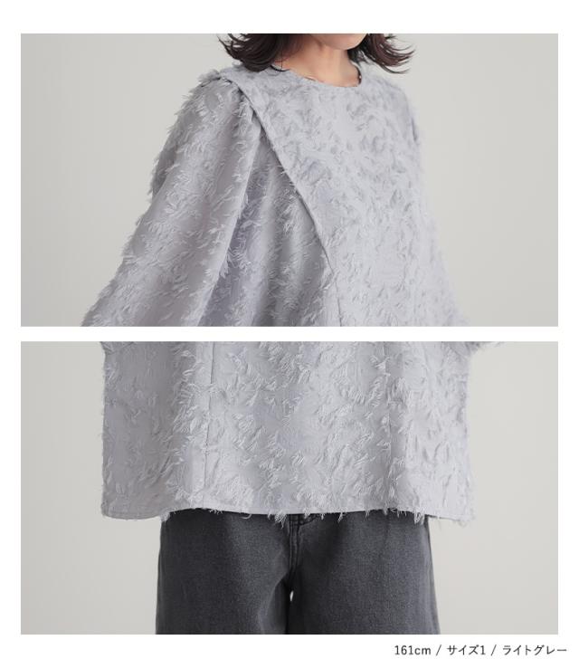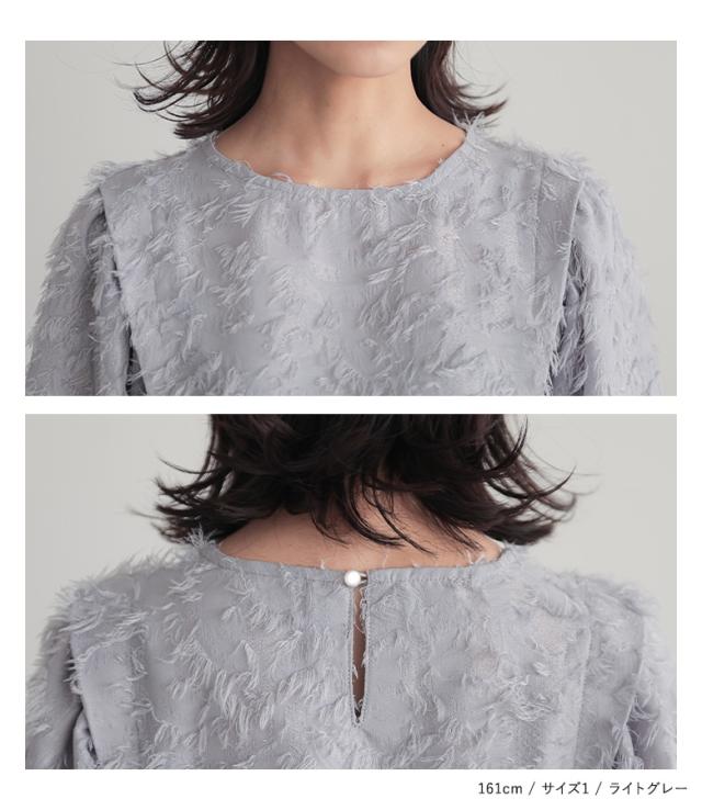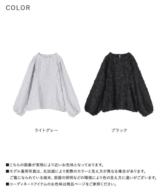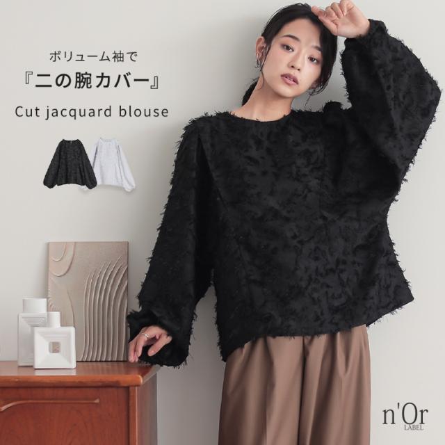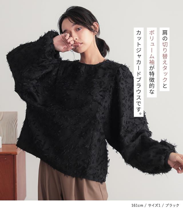 『カットジャカードブラウス』※メール便可※【10】[トップス ブラウス 長袖 レディース ジャガード おしゃれ すっきり 二の腕カバー 体型カバー 切り替え 細見え ボリューム袖]