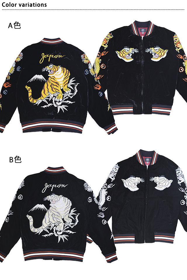 虎別珍スカジャン 朧 9043833 おぼろ 和柄 和風 ベロア スーベニアジャケット トラ 刺繍