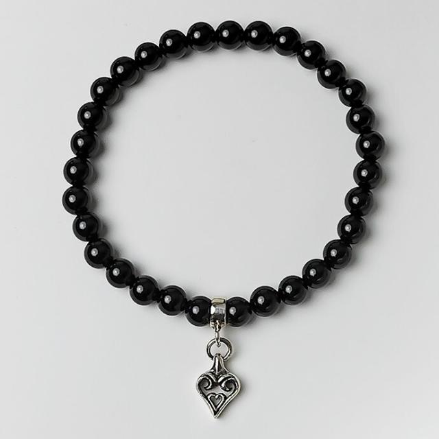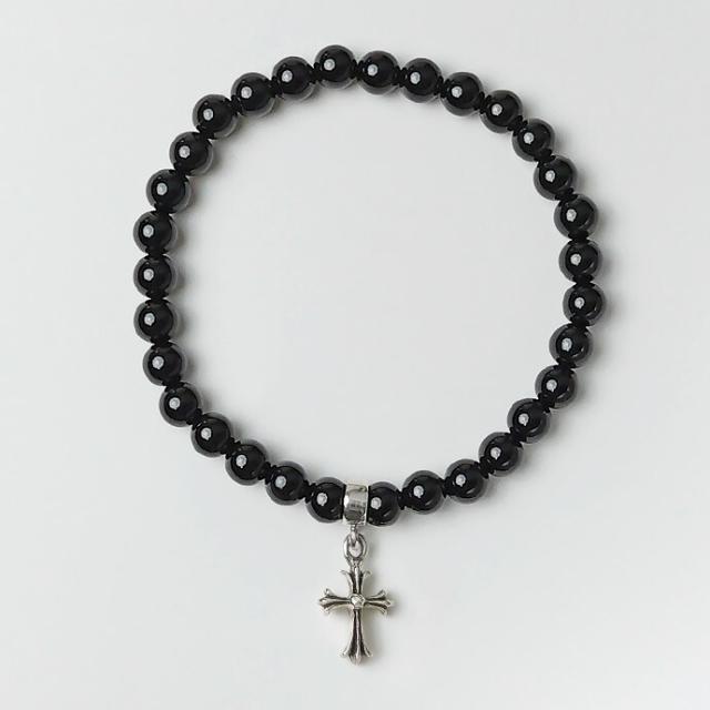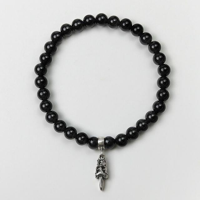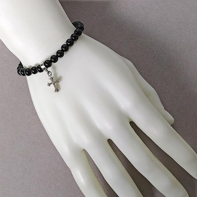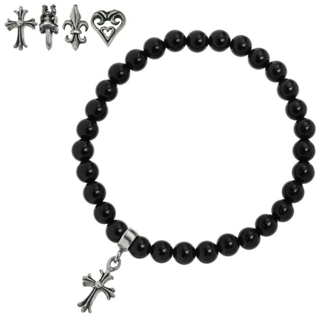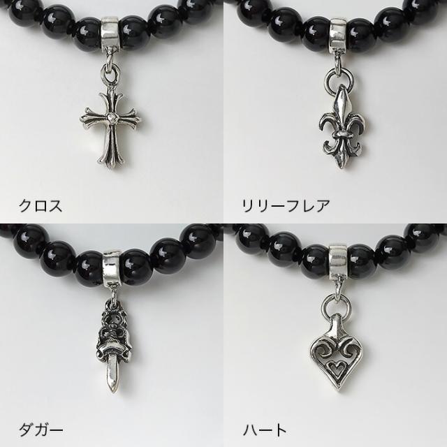 ブレスレット メンズ オニキス 天然石 6mm玉 パワーストーン シルバー925 クロス 十字架 ダガー リリーフレア 百合 ハート ゴシック ブラック 数珠ブレスレット シルバーブレスレット アクセサリー 20代 30代 40代 50代