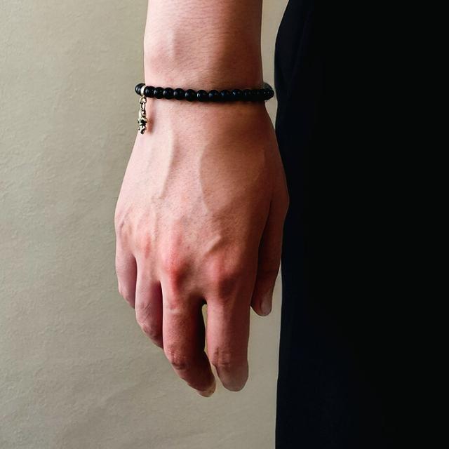 オニキスは古くから魔除けや邪気払いの石として知られ、目標達成や意志の強さを象徴する天然石。ブラック×シルバーの配色はコーディネートを引き締め、Tシャツやレザーアイテムとも相性良く、さりげないアクセントとして活躍します。