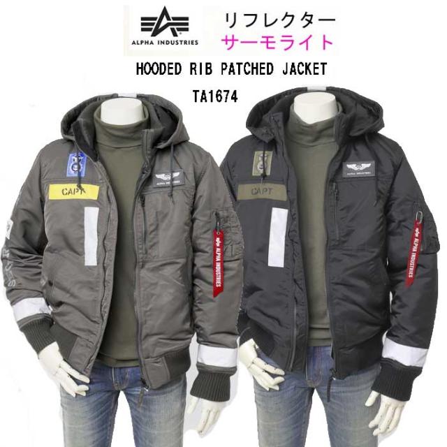 ALPHA INDUSTRIES アルファ ta1674 パッチドフーデッドリブジャケット ブルゾン アウター ミリタリージャケット 中綿ジャケット