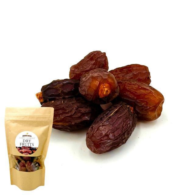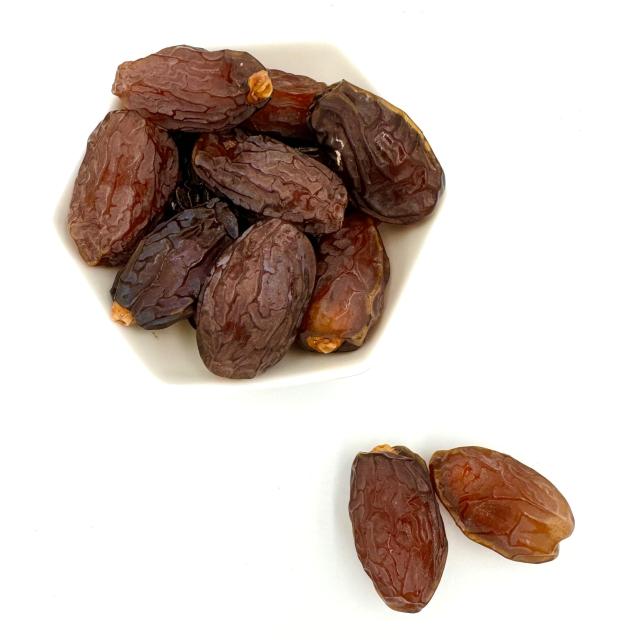 5段階中1番目に大きい「JUMBO」サイズ、選別レベルはエクストラクラスの「プレミアムグレード」で全体の2%の収穫量しかないデーツのみを使用しています。