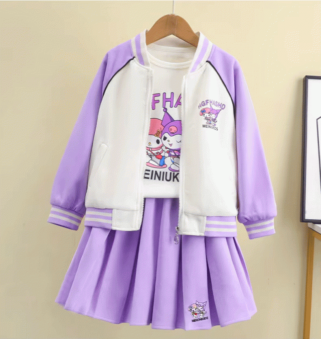 クロミちゃん メロディちゃん 女の子 子供服 長袖のツーピースセット セーター+シャツ+スカート 3点セット 120-170cm パープル カジュアルファッション かわいい キュート 春 秋 冬