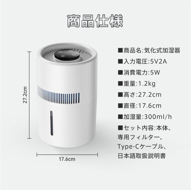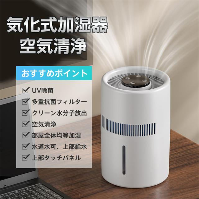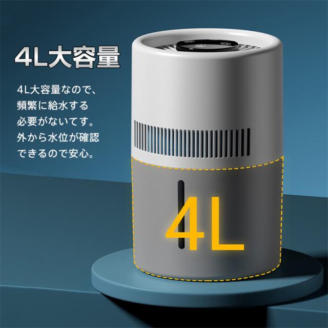 加湿器 気化式 4L 空気清浄 大容量おしゃれ 上から給水 水漏れしない 2段階風量設定 お手入れ簡単 水量確認可能 省エネ 卓上 usb
