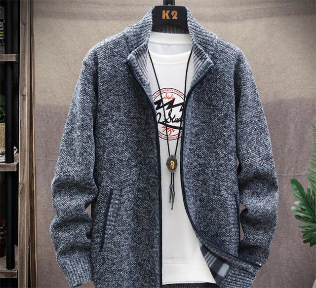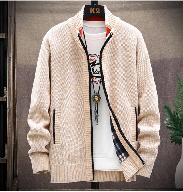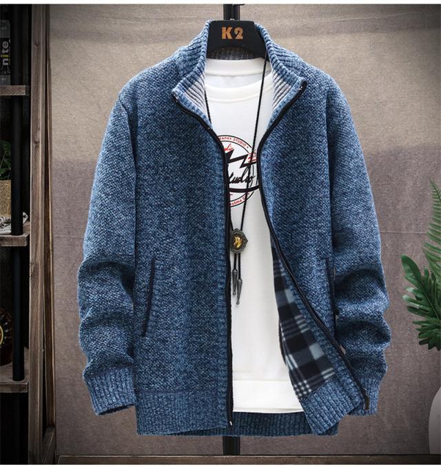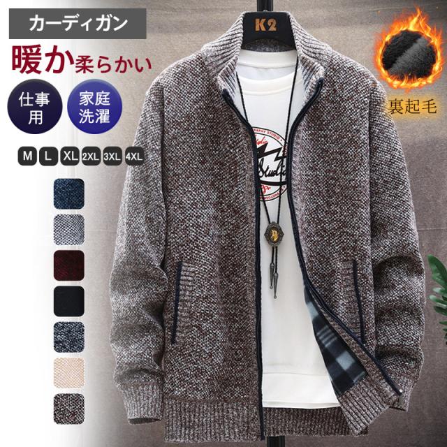 カーディガン メンズ ニットジャケット 裏起毛 ニットカーディガン 前開き ジップアップ 立ち襟 アウター 大きいサイズ 厚手 無