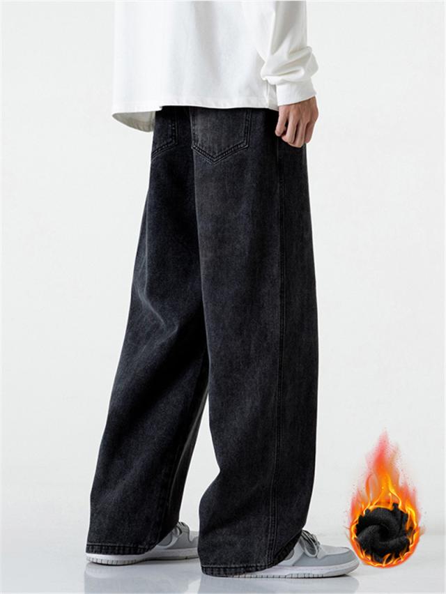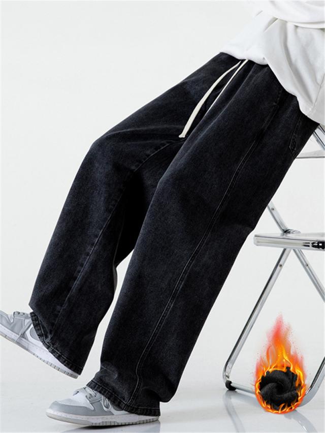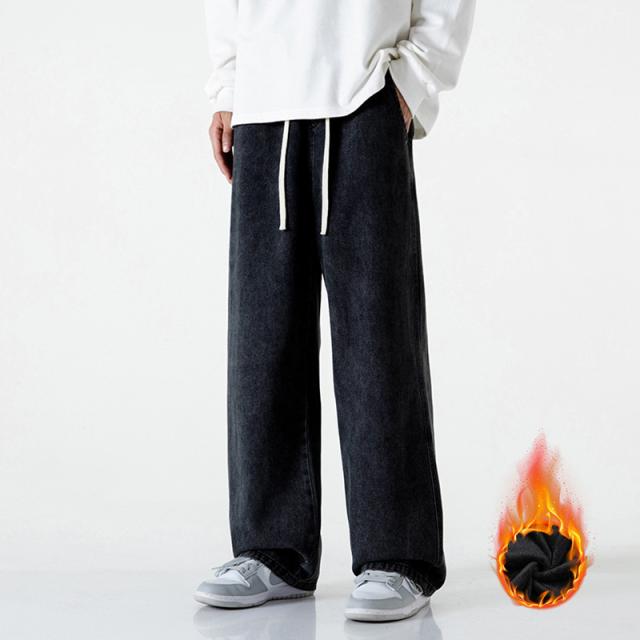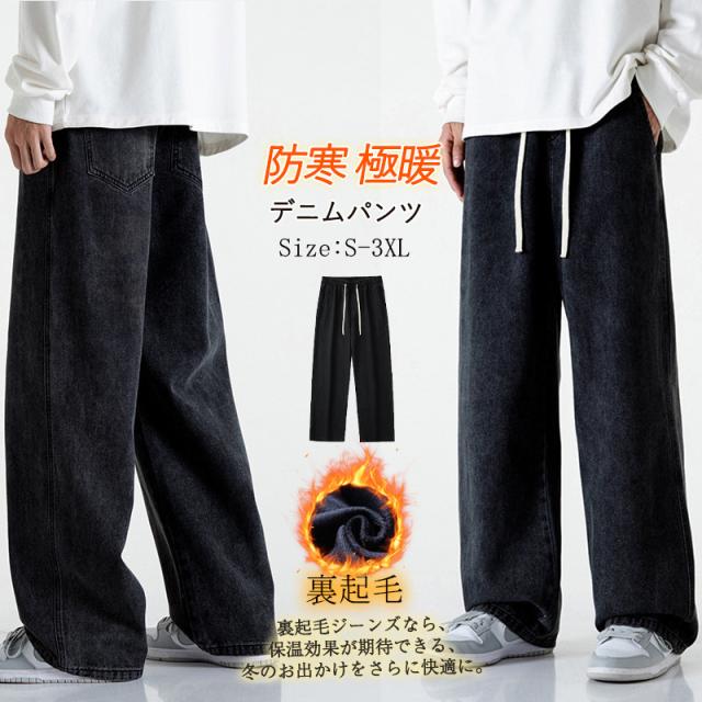 デニムパンツ メンズ 裏起毛パンツ ワイドパンツ 裏ボア 暖か 秋冬 ゆったり ストレッチ あったか 保温 防寒 厚手 通学 カジ
