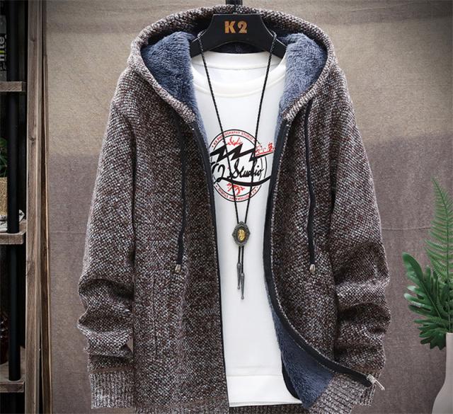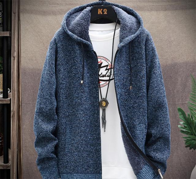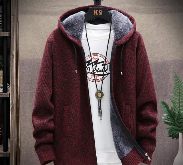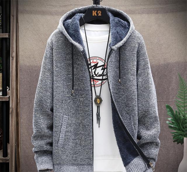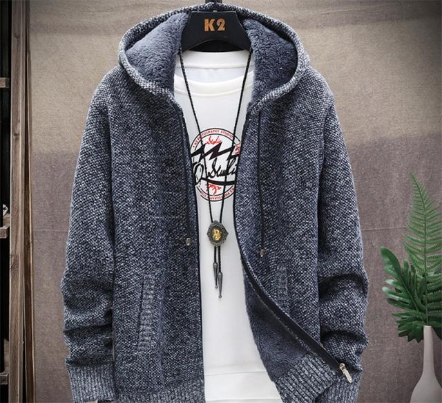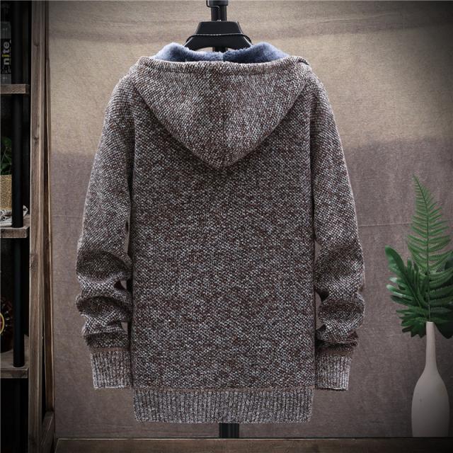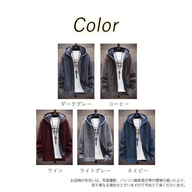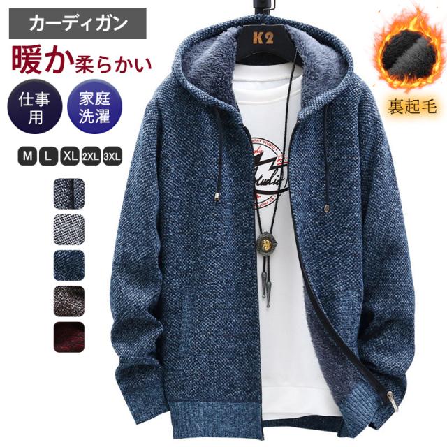 カーディガン メンズ 裏起毛 ニット セーター フード付き ニットジャケット ジップアップ アウター 秋冬 厚地 あったか 防寒