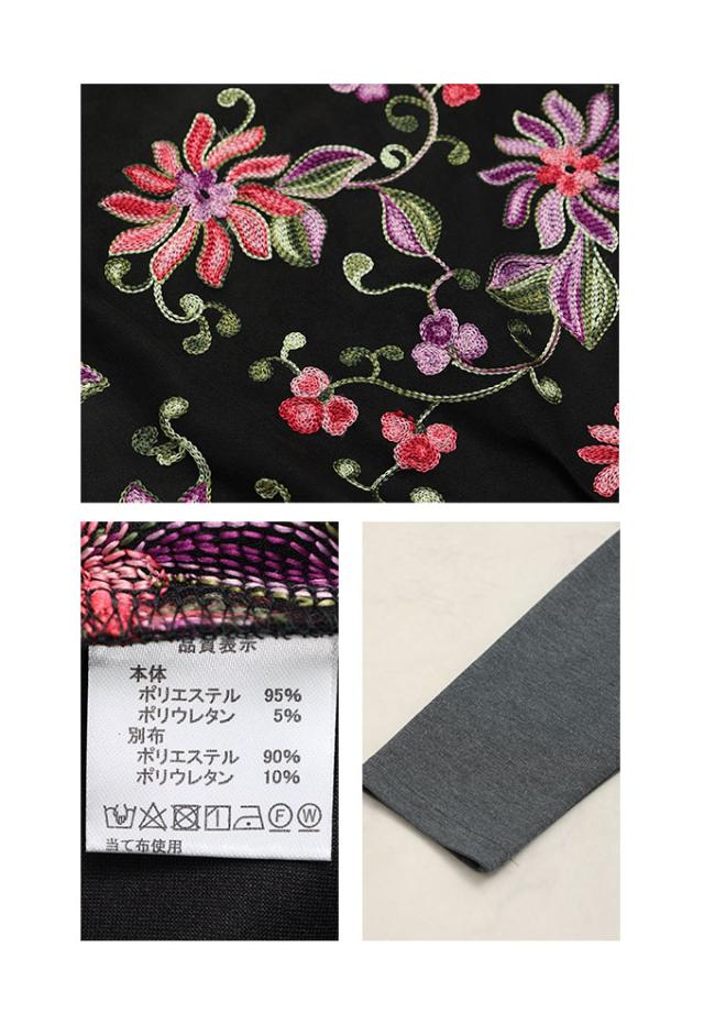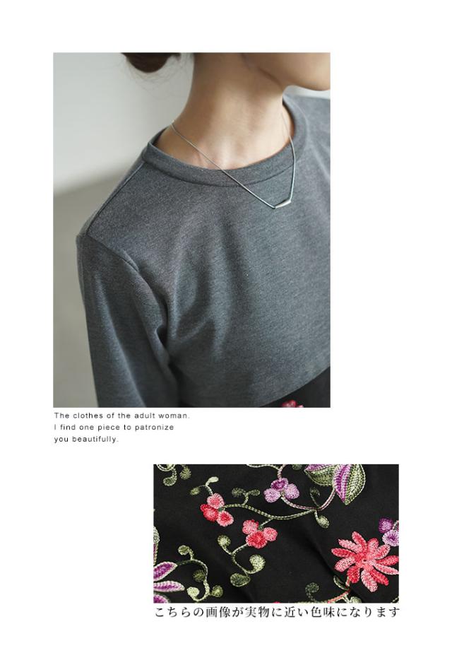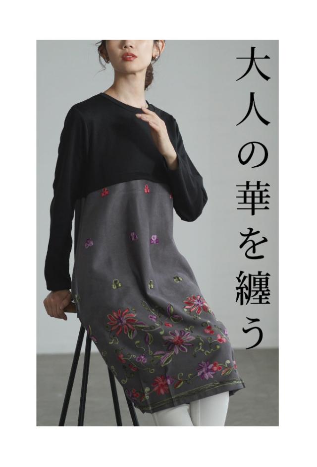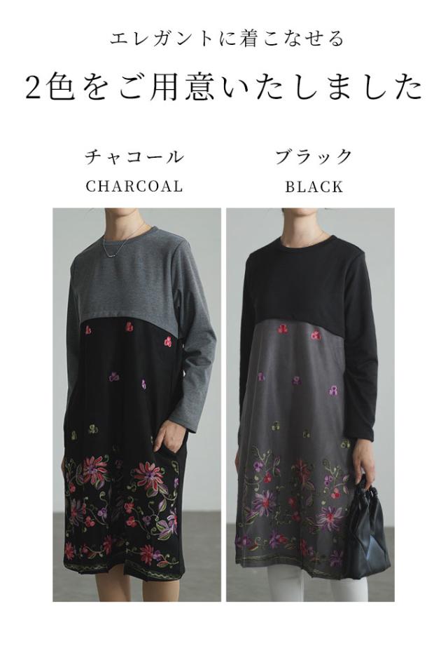 春新作 艶やかな贅沢花刺繍の異素材切替ワンピース レディース ファッション ワンピース チュニック 黒 ブラック チャコール 花 大人可愛い 40代 レディースファッション 50代女性 ファッション 60代 ミセスファッション サワアラモード sawaalamode otona almam-366136