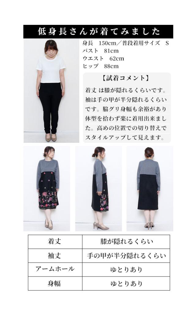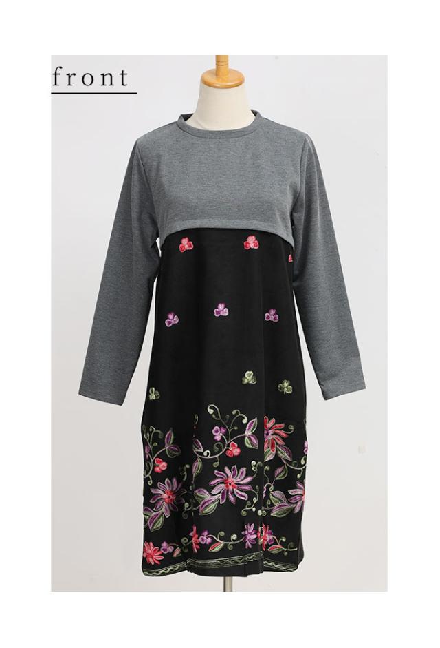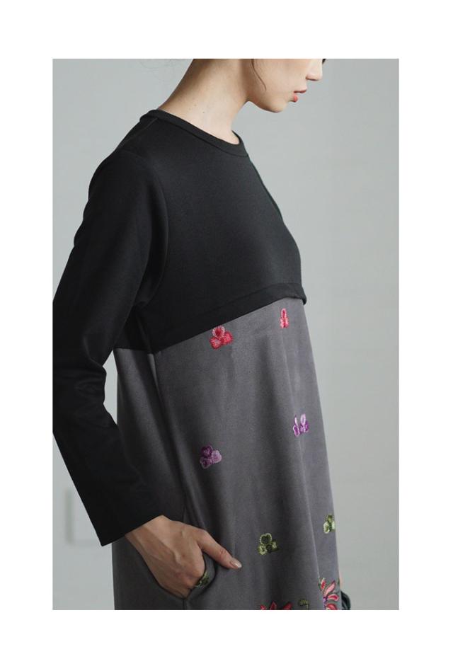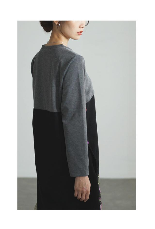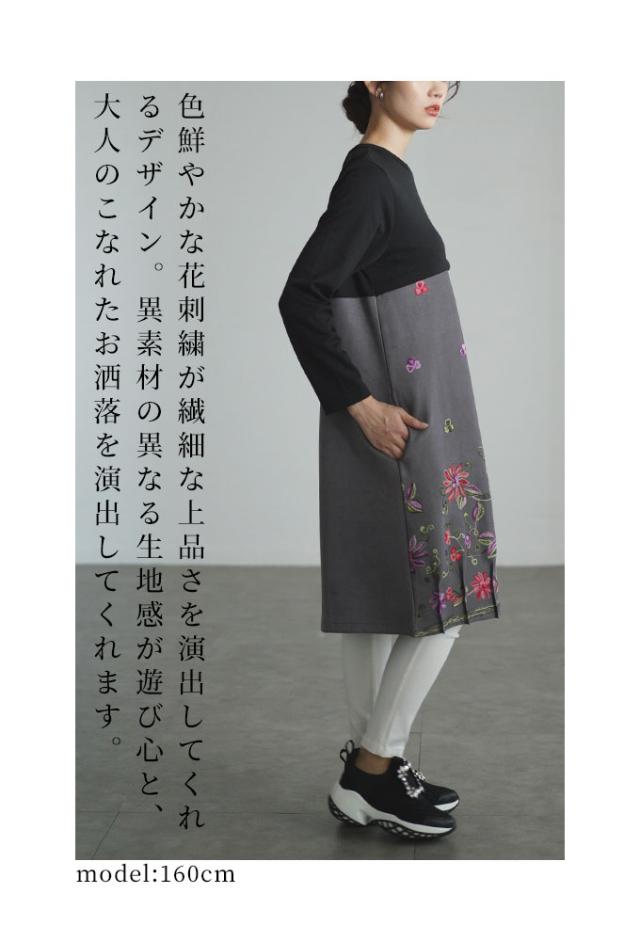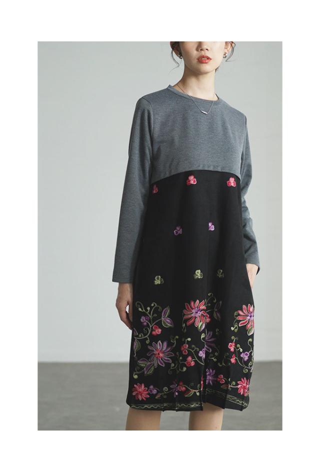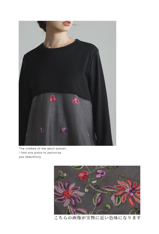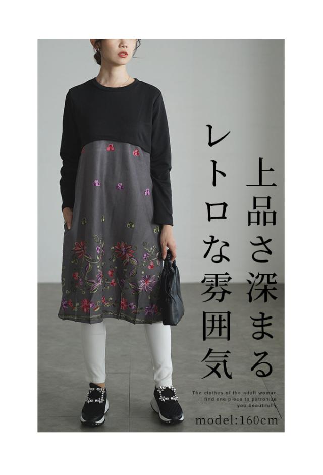商品名: 贅沢花刺繍の異素材切替ワンピース