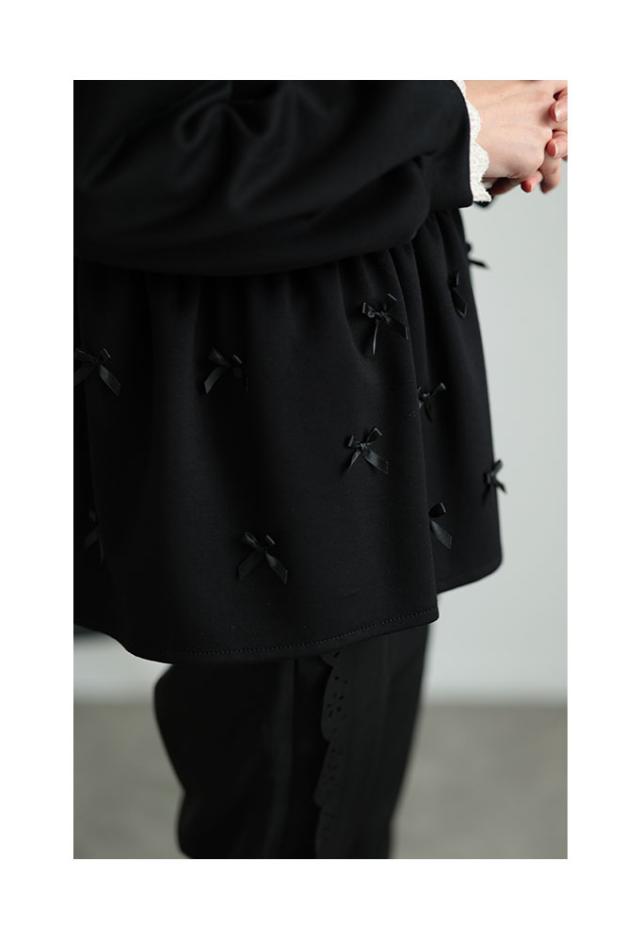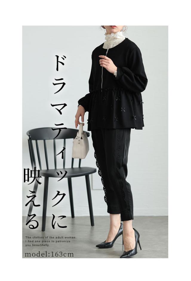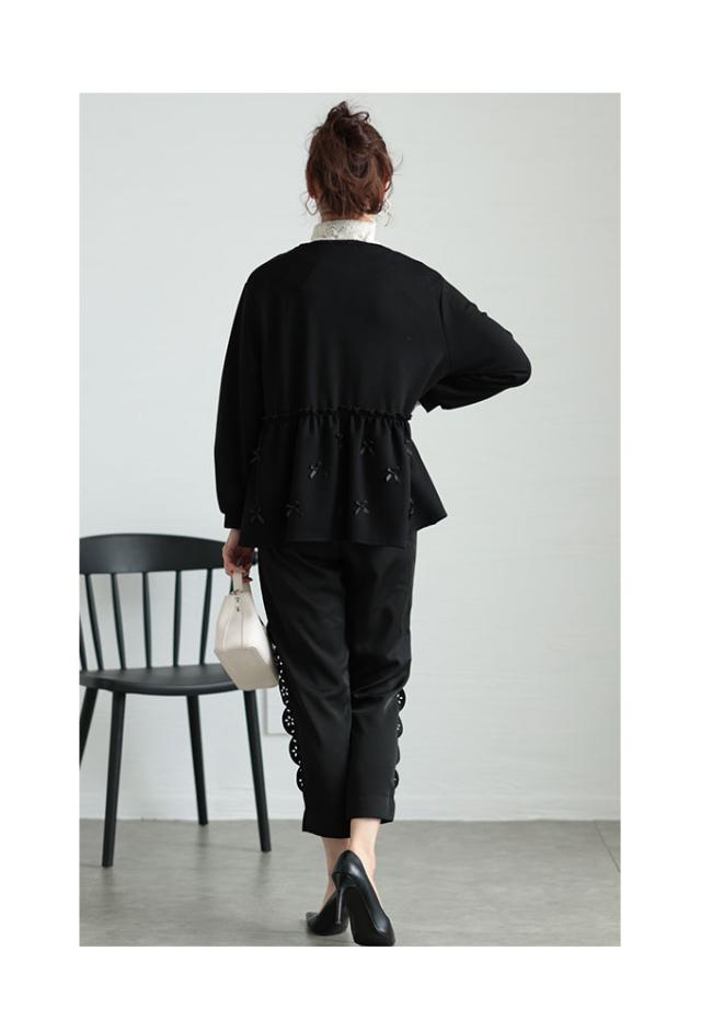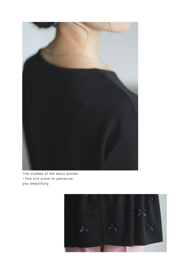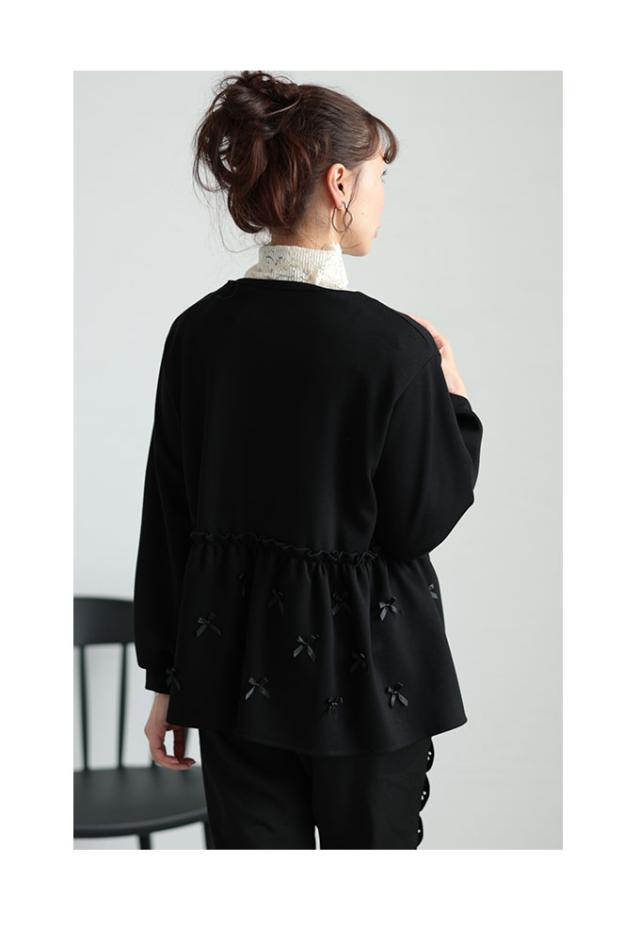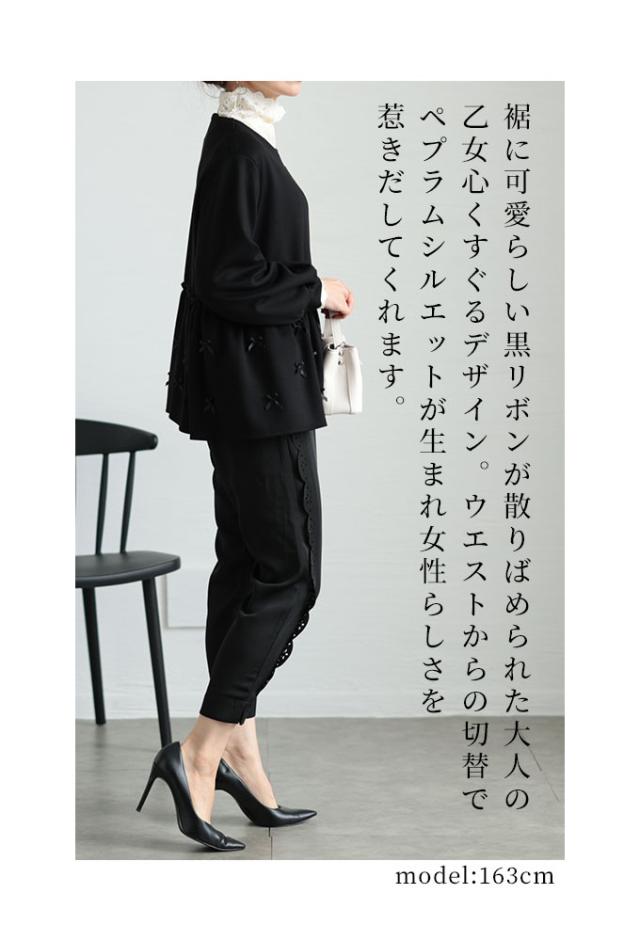 春新作 リボンを散りばめた裾フレアパーカートップス レディース ファッション トップス パーカー プルオーバー 黒 ブラック 秋 大人可愛い 40代 レディースファッション 50代女性 ファッション 60代 ミセスファッション サワアラモード sawaalamode otona almam-86032