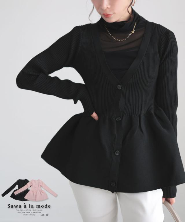 冬新作 1枚で映える美シルエットペプラムニットカーディガン レディース ファッション トップス ニット セーター カーディガン 大人可愛い 40代 レディースファッション 50代女性 ファッション 60代 ミセスファッション サワアラモード sawaalamode otona aldt-841a1044