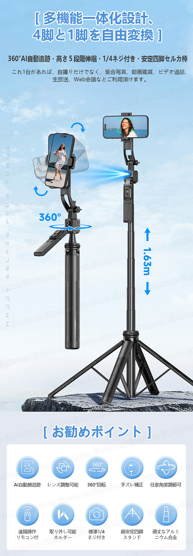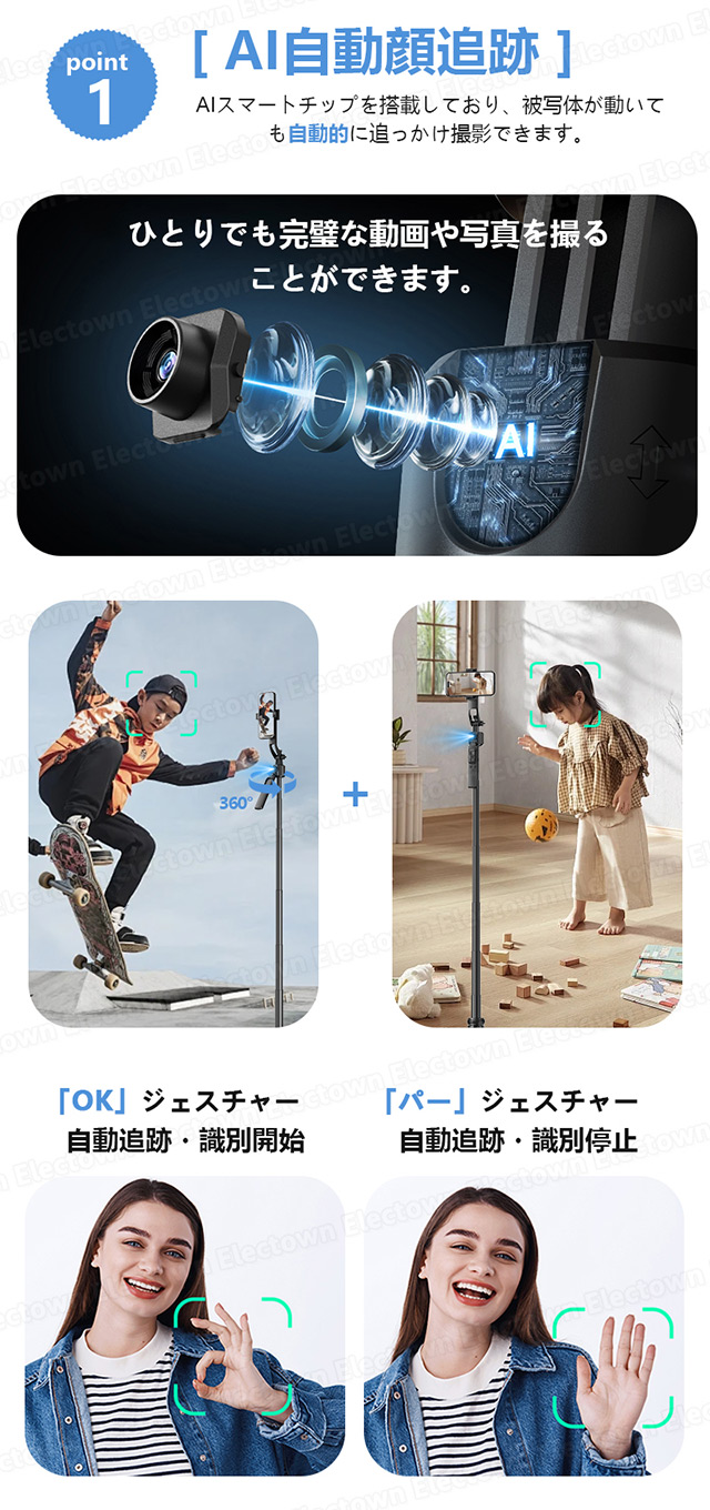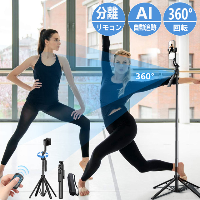 「クーポン配布中」「即納」AI 顔追跡 自撮り棒 三脚 セルカ棒 三脚 スマホ三脚 スマホスタンド ジンバル 360°自動回転 三脚スタンド スマホスタンド Bluetoothリモコン ワイヤレス撮影 ネット授業お勧め カメラスタンド 撮影用四脚 フィルライト対応 Face Follow