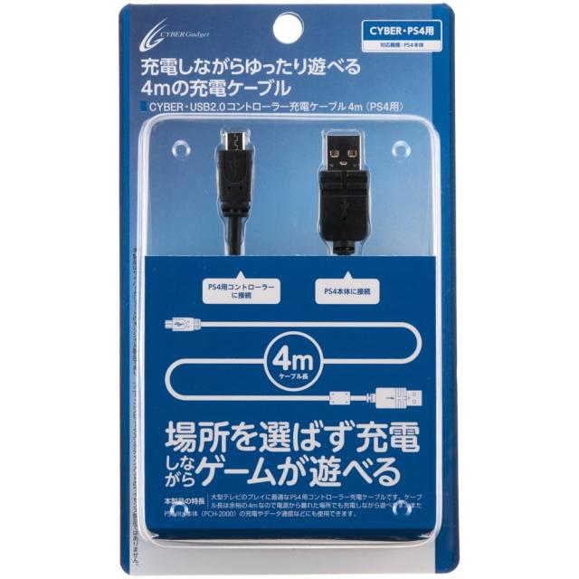 ◆商品名:【PS4 CUH-2000 対応】 CYBER ・ USB2.0コントロー ラー充電ケーブル 4m ( PS4 用) ブラック 【PSVita ( CUH-2000 ) 対応】