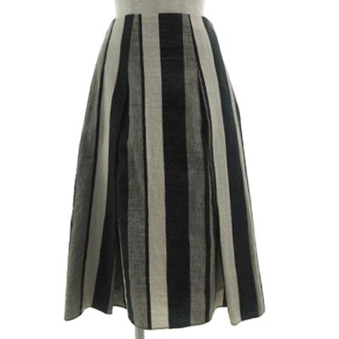 【中古】シープラス C+ ファスサンファール スカート タック 台形 ミモレ丈 リネン混 ストライプ 黒 ベージュ 38