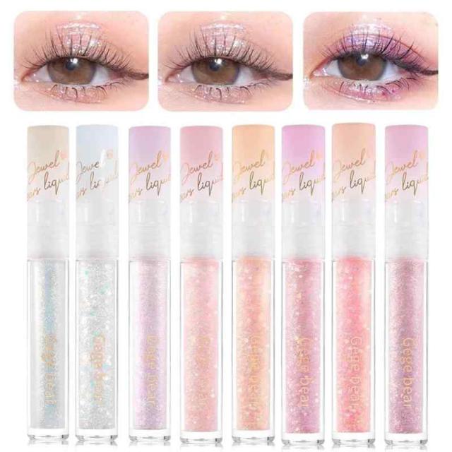 Gege bear 星のようなリキッドグリッターシャドウ 液体アイシャドウ キラキラ ラメ、単色、スティックアイシャドウ、涙袋 8色 星砂リキッドアイシャドウ リキッドアイシャドウ 長持ち 高発色 透明感 携帯便利 使用簡単 (08 カラーキャンディ)