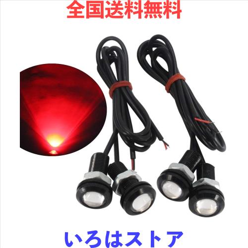 ◆商品名:X-STYLE LED デイライト 18mm 赤 スポットライト イーグルアイ ボルト型 大玉計 防水 高輝度 埋め込み型 12V用 4個セット (レッド)